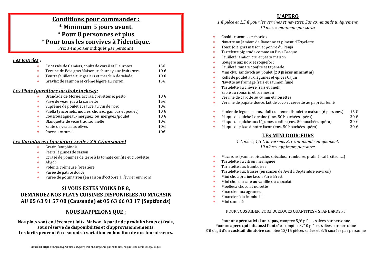 - un service de plateaux-repas à venir récupérer à la boutique ou à se faire livrer pour le midi (minimum 6 plateaux, Caussade et environs, sinon nous contacter)